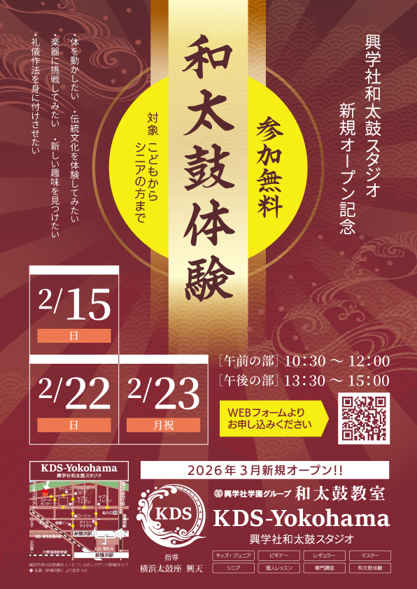 News & Topics新横浜 「KDS-Yokohama 興学社和太鼓スタジオ」開校のお知らせ2026.02.04 NEW