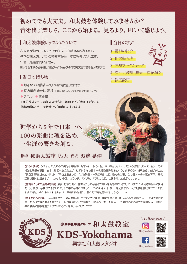KDS-Yokohama 和太鼓体験 ※チラシのPDFはこちら※